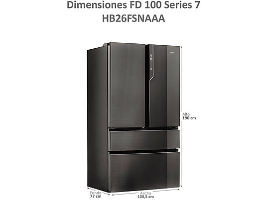 Frigorífico Americano Haier FD 100 Series 7 HB26FSNAAA, 750 L, No Frost, Inverter, Grafito