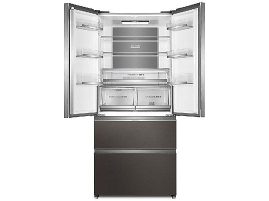 El Haier FD 83 Series 7 HB18FGSAAA es un frigorífico americano de diseño French Door que destaca por su capacidad, eficiencia y tecnología de conservación avanzada. Con un volumen total de 539 litros y un acabado en acero inoxidable efecto cristal, se adapta a cualquier cocina moderna.